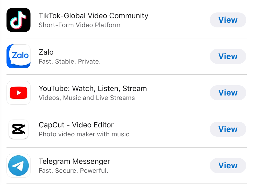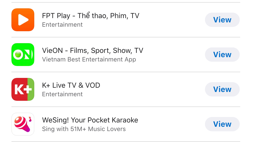 Danh sách 24 ứng dụng xếp hạng theo danh mục được Apple giới thiệu bao gồm: