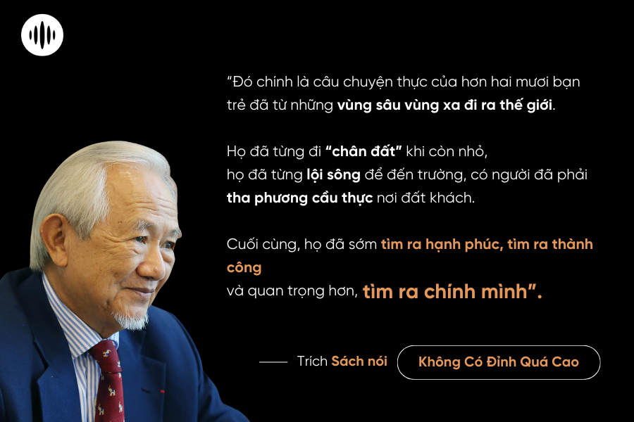 Tựa sách nói tiếp theo mà Fonos muốn giới thiệu đến bạn là Không Có Đỉnh Quá Cao - Từ Làng Quê Bước Ra Chinh Phục Thế Giới, được thầy Phan Văn Trường viết cùng 25 tác giả là 25 thành viên trong Hệ sinh thái Cấy Nền mà thầy đã sáng lập.