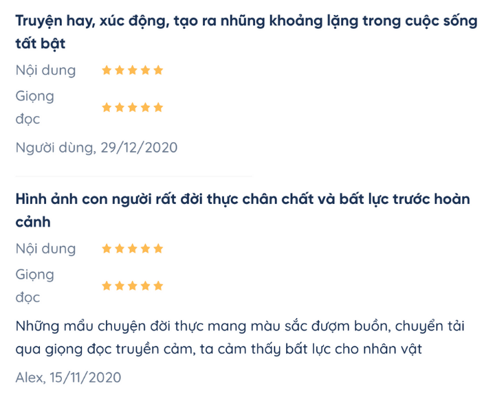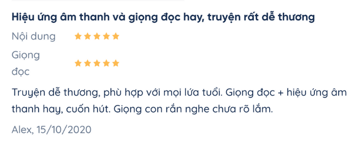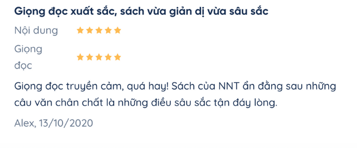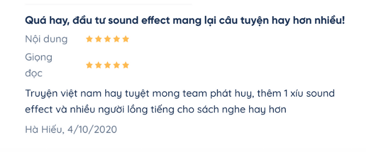 Sách nói xứng đáng 5/5 điểm về giọng đọc theo bình chọn của cả Fonos và nhận xét từ người dùng.