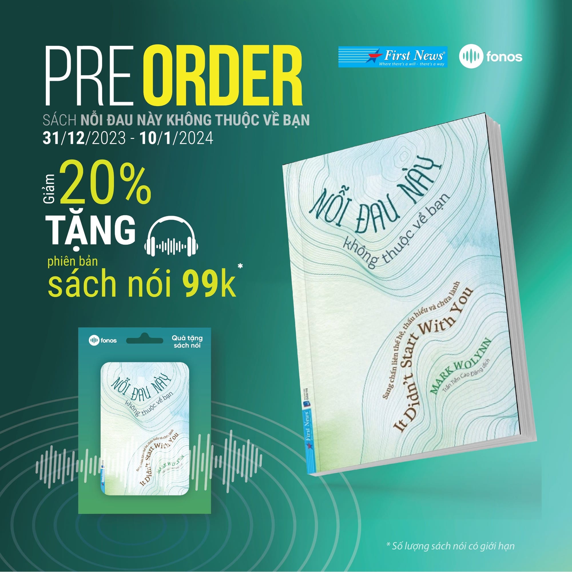 Lần đầu tiên First News hợp tác cùng Fonos phát hành đồng thời 2 phiên bản sách giấy và sách nói cùng lúc vào ngày 10/01/2024. Dịp này, 100 bản SÁCH NÓI “NỖI ĐAU NÀY KHÔNG THUỘC VỀ BẠN” sẽ được tặng kèm khi đặt mua trước bản sách giấy từ ngày 31/12/2023 đến ngày 10/01/2024, với mức giảm 20% so với giá bìa.