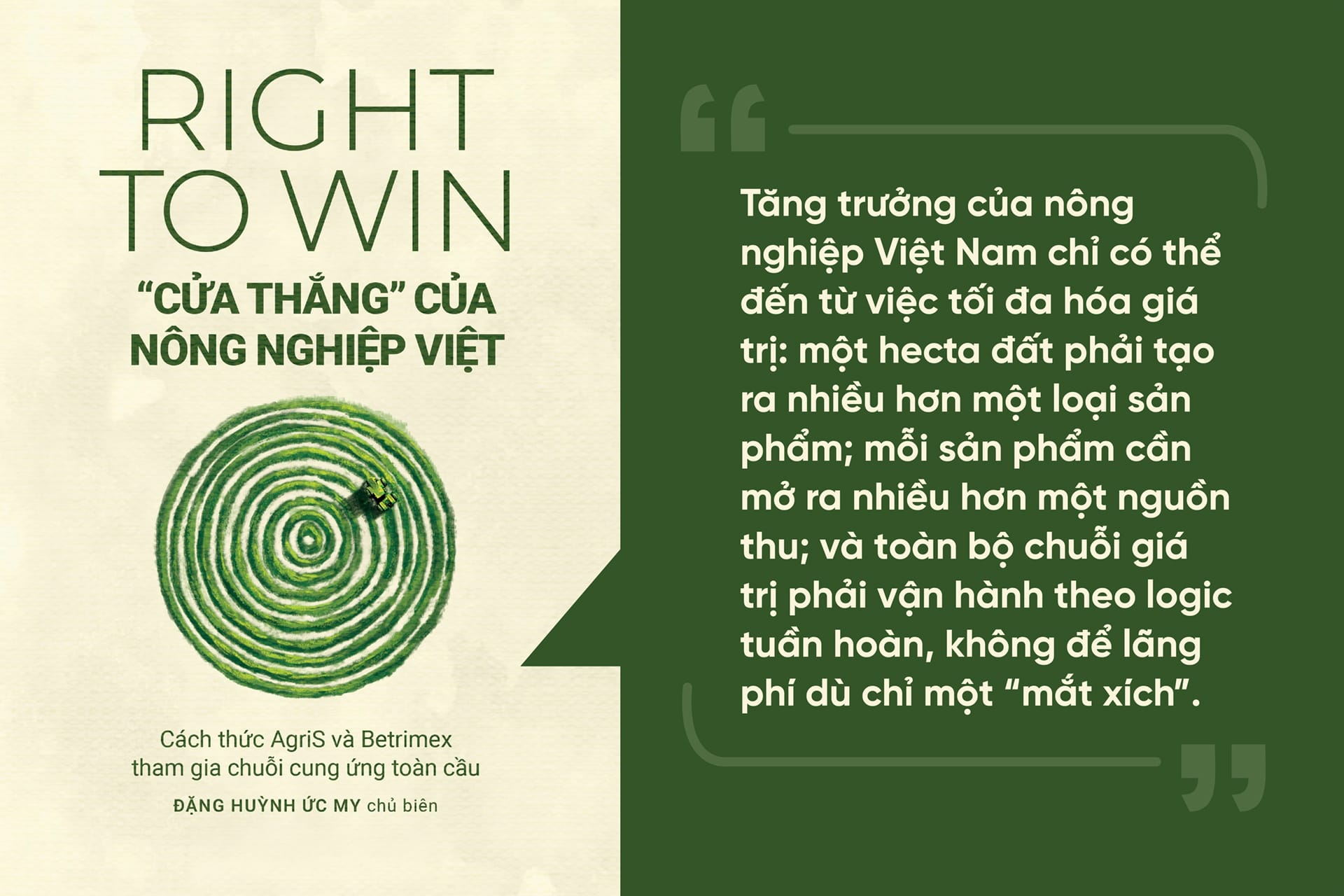 Trong thời điểm Việt Nam bước vào giai đoạn chuyển mình mạnh mẽ, câu hỏi “Nông nghiệp Việt sẽ đi về đâu?” trở nên quan trọng hơn bao giờ hết. Không chỉ là thách thức của người làm nông nghiệp, đó còn là câu hỏi dành cho các doanh nghiệp, nhà hoạch định chính sách và bất kỳ ai quan tâm đến tương lai bền vững của đất nước. Cuốn sách “Right To Win - Cửa Thắng Của Nông Nghiệp Việt” ra đời từ chính bối cảnh này, với mong muốn mở ra một góc nhìn mới: nông nghiệp Việt cần một “hệ điều hành mới” để đi xa hơn và bền vững hơn.