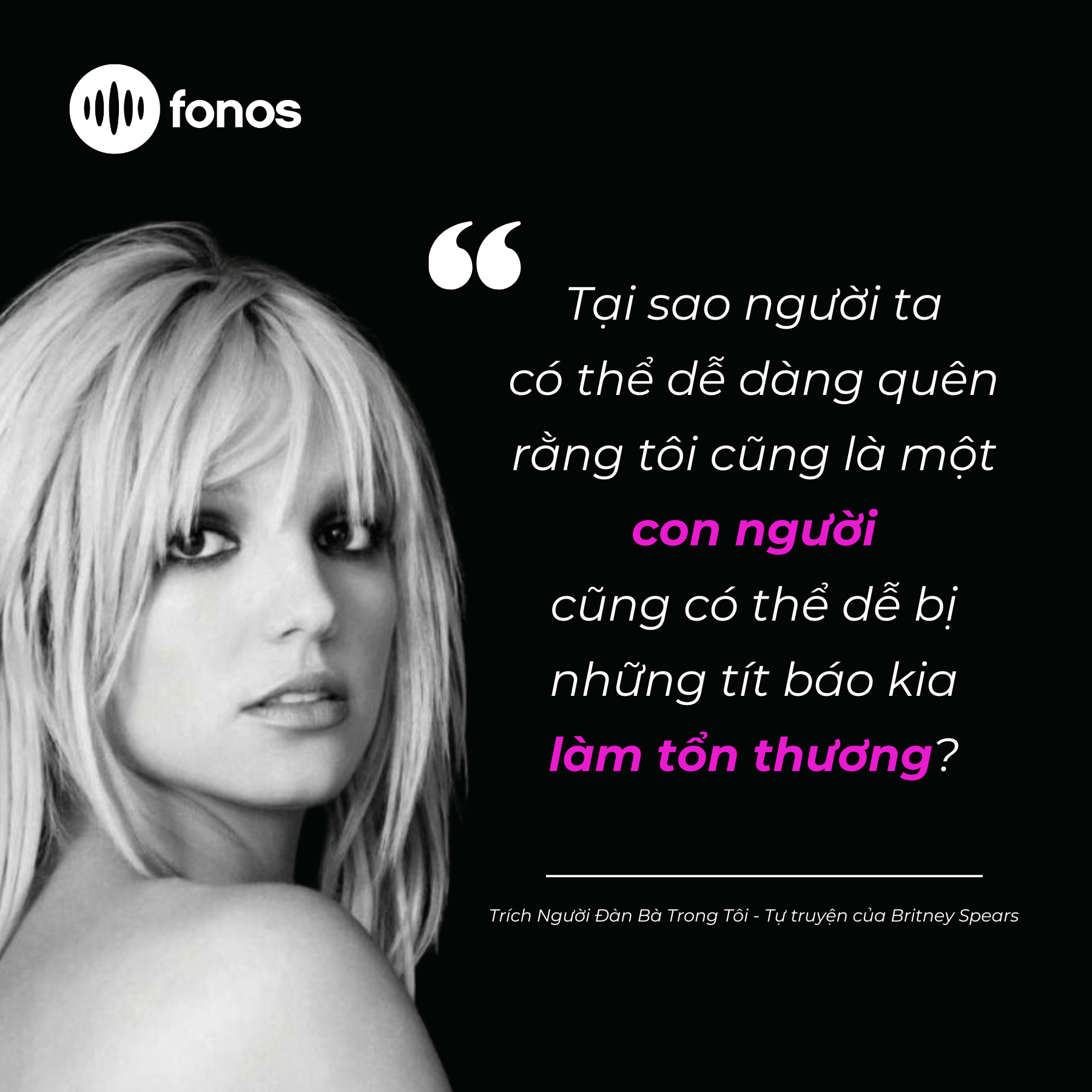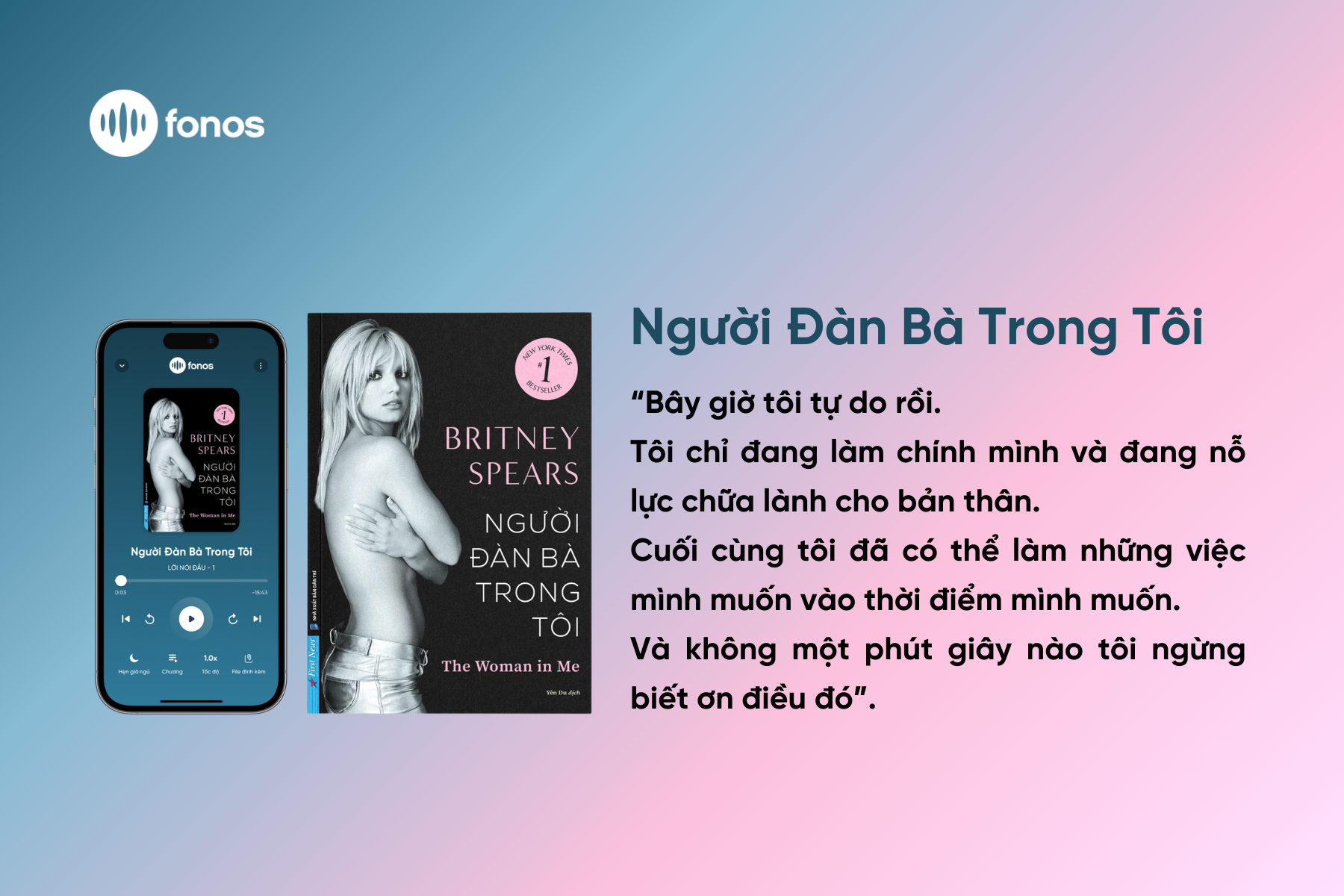 Chiều 19-4, tại TPHCM, trong khuôn khổ Hội Sách Thành phố Hồ Chí Minh, Ứng dụng sách nói Fonos và First News Trí Việt cùng tổ chức chương trình giao lưu ra mắt phiên bản sách giấy và sách nói, tự truyện Người đàn bà trong tôi của ca sĩ Britney Spears.